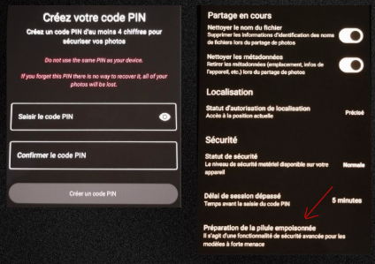 Vous avez aussi la possibilité d’ajouter un PIN poison qui supprimera toutes les photos si vous l’utilisez.