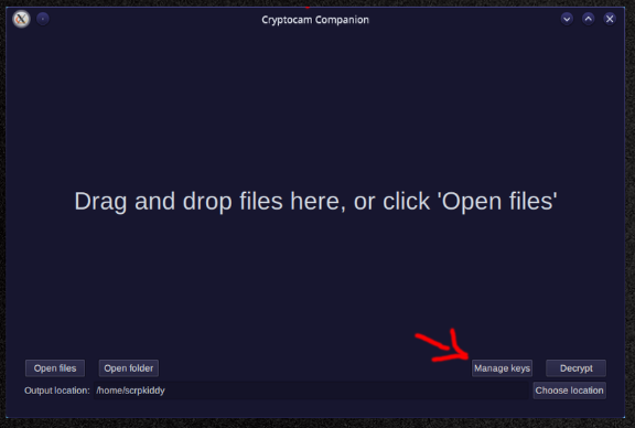 Récupérez les clés sur le téléphone, lancez Cryptocam Companion sur votre ordinateur et cliquez sur Manage Keys, puis sur Create Key.