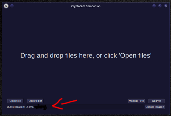 Pour décompresser, copiez les fichiers chiffrés sur votre ordinateur, glissez-les dans Cryptocam Companion, choisissez le dossier d’extraction, cliquez sur Decrypt et vous aurez accès à la vidéo.